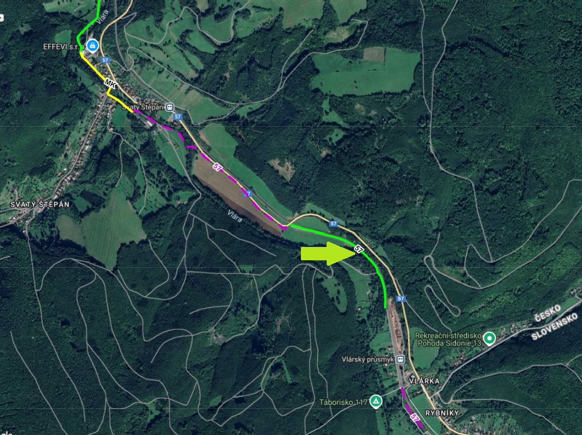 Tentokrát se jedná o úsek od železničního přejezdu ve Svatém Štěpánu po stávající místní komunikaci v Sidonii (za vlakovým nádražím). Objevování příhraničního regionu ze sedla kola tak bude znovu o něco bezpečnější, protože se vyhnete části nepřehledného a frekventovaného úseku silnice I. třídy. Přesto dbejte opatrnosti, zejména při vyjíždění z vybudované cyklostezky na hlavní silnici (u železničního přejezdu).